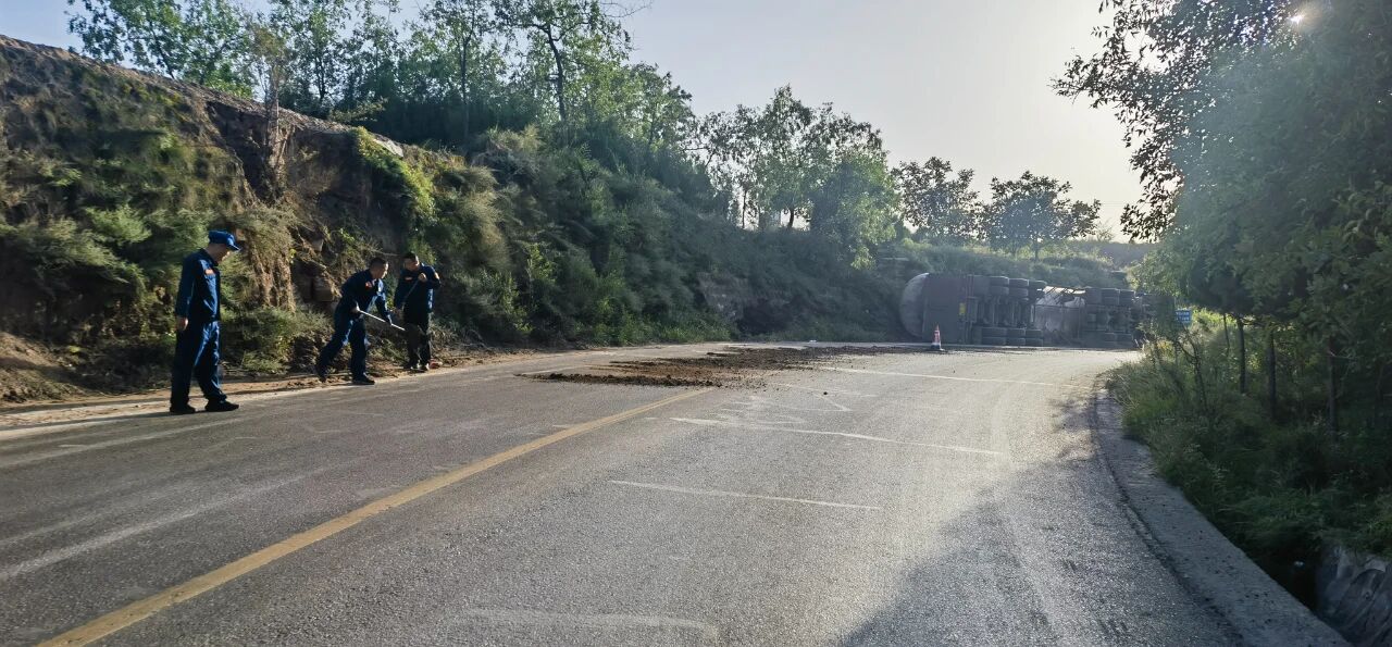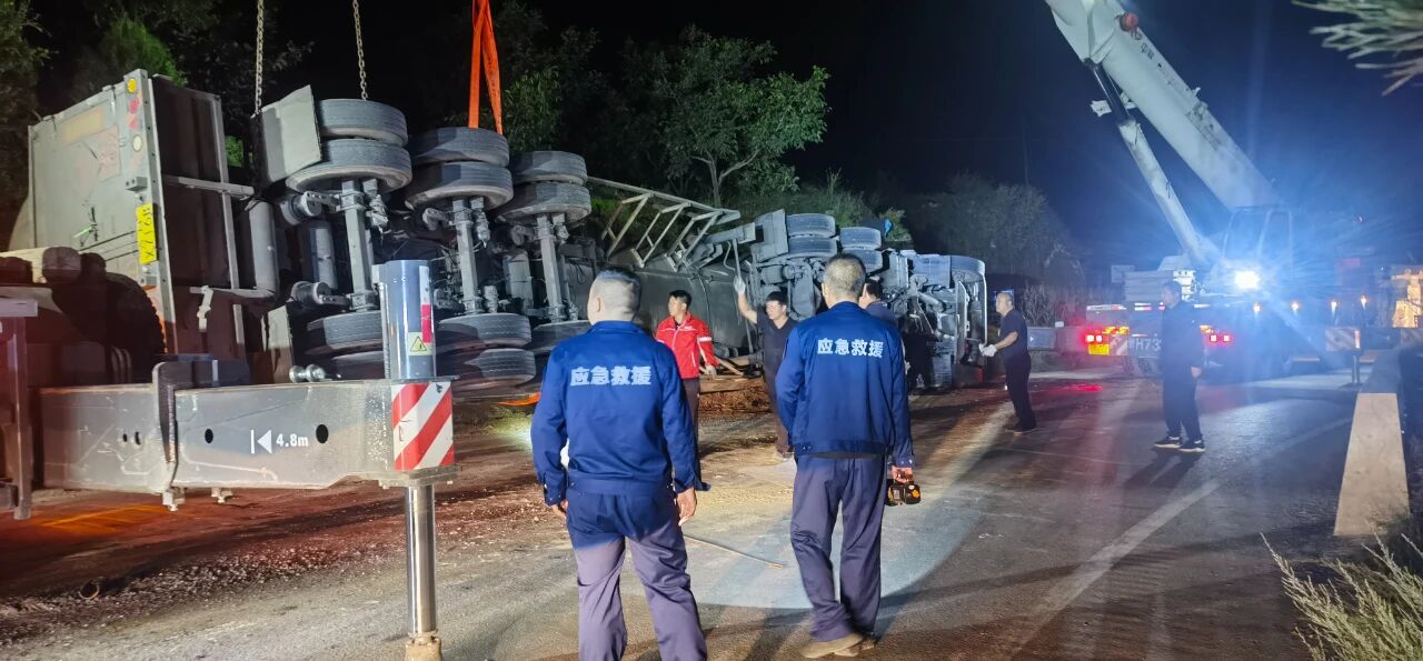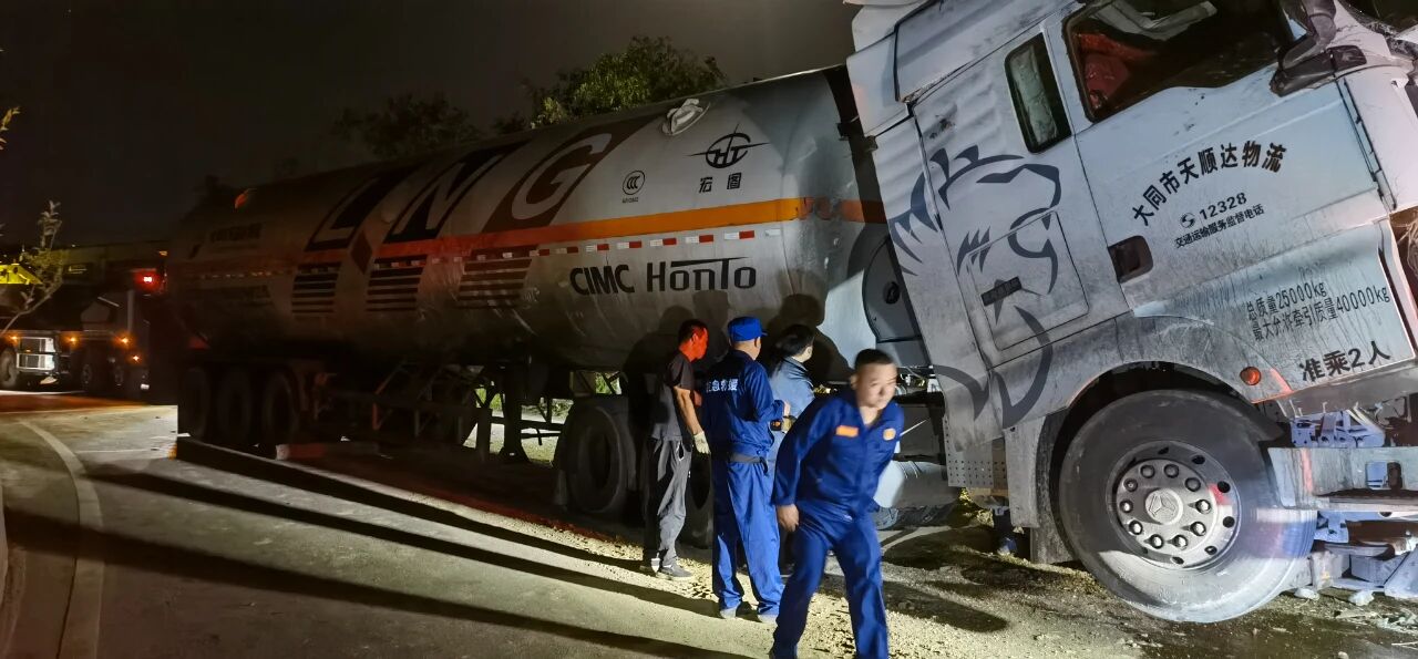 2025年9月6日,一輛裝載液化氣的重型半掛牽引車在土崖塔鄉(xiāng)寨上村附近路段發(fā)生側(cè)翻,現(xiàn)場情況緊急?h應(yīng)急管理局救援大隊(duì)、縣公安局、縣消防救援大隊(duì)、保德守押中隊(duì)?wèi)?yīng)急救援隊(duì)等多部門迅速響應(yīng),第一時(shí)間趕赴現(xiàn)場協(xié)同開展應(yīng)急救援工作,全力守護(hù)群眾生命財(cái)產(chǎn)安全。經(jīng)現(xiàn)場查看,氣罐車罐體出現(xiàn)輕微變形,并伴隨機(jī)油等混合液體流出,液化氣具有易燃易爆特性,事故地點(diǎn)臨近村落,嚴(yán)重威脅了人民群眾生命財(cái)產(chǎn)安全和過境車輛安全交通安全。